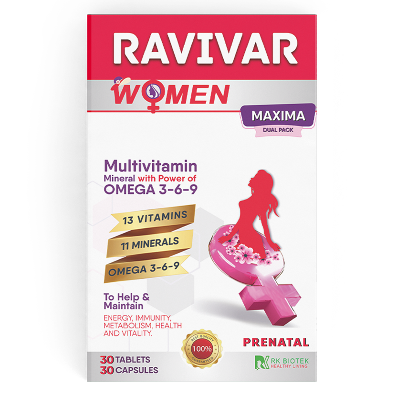RAVIVAR WOMEN MAXIMA Dual Pack MULTINUTRIENT with Omega 3-6-9 provides a wide array of benefits aimed at optimizing women’s health through its meticulously selected ingredients and advanced formulation: