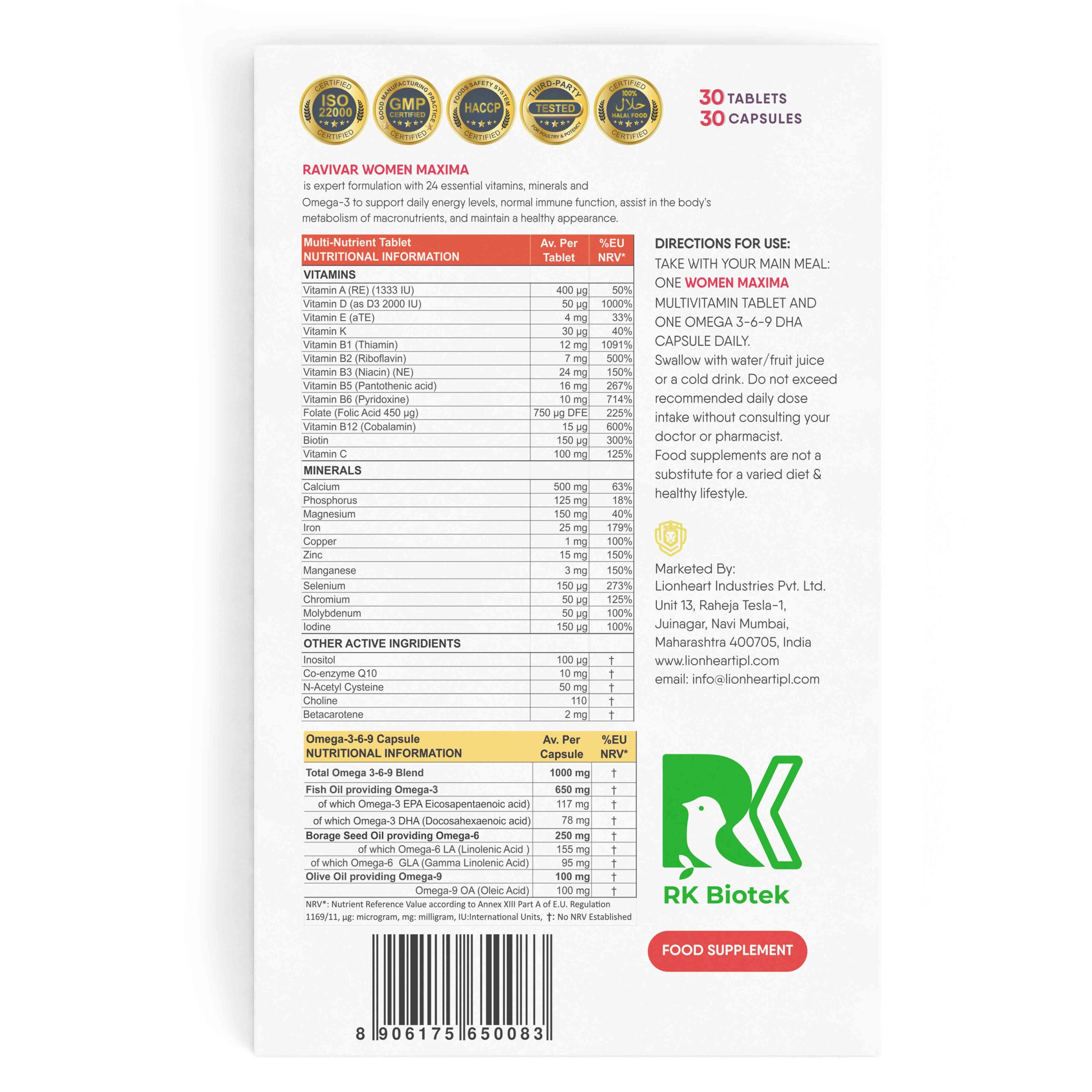 RAVIVAR WOMEN MAXIMA Dual Pack MULTINUTRIENT with Omega 3-6-9
